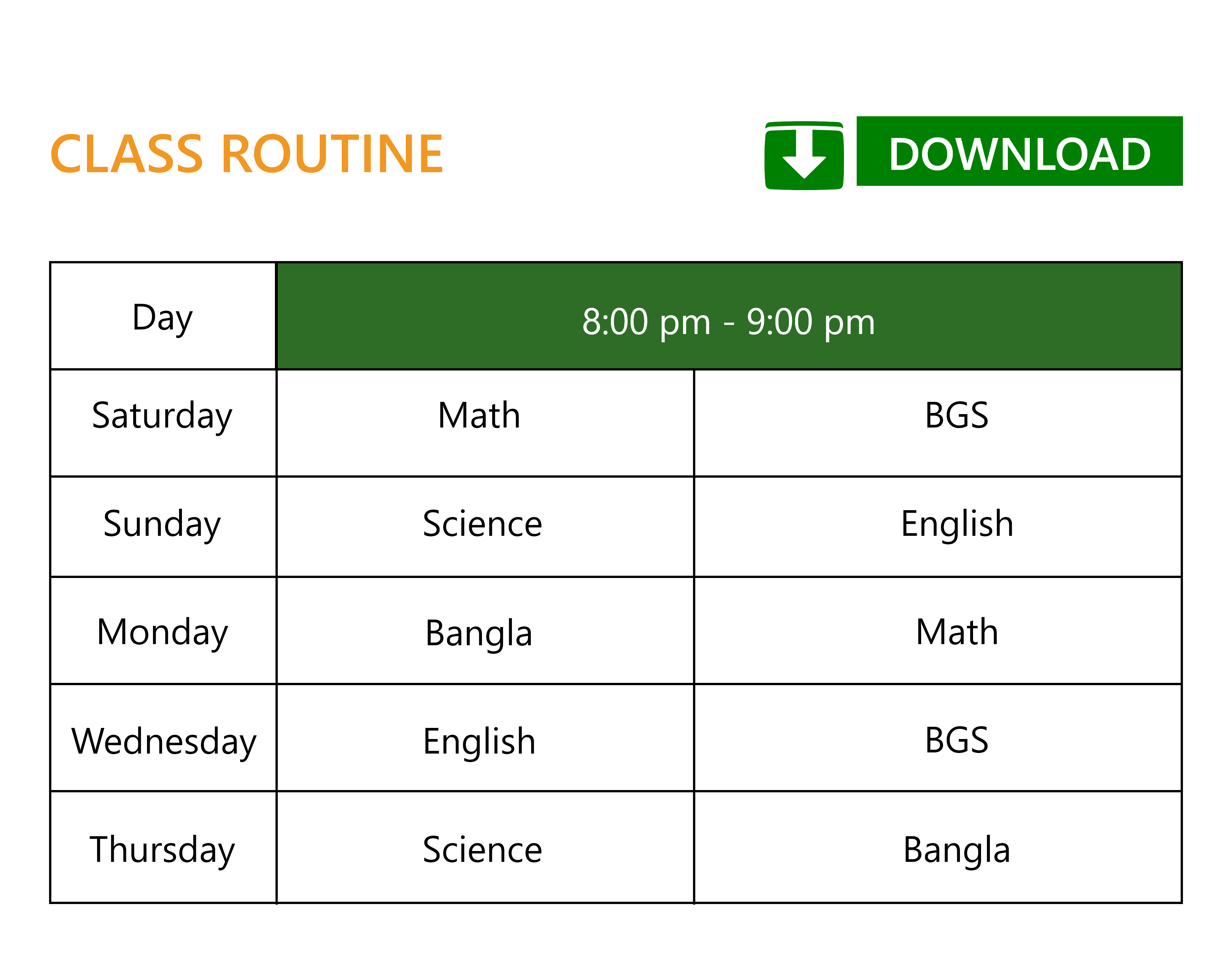 ✓ ক্লাস শুরু: ০১ জানুয়ারি হইতে ৩০ শে নভেম্বর পর্যন্ত।